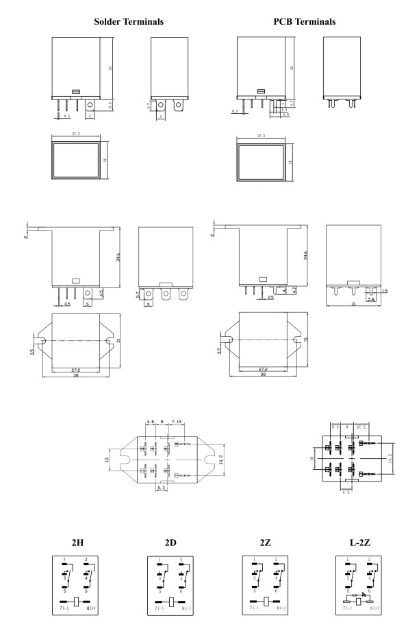 Kontaktfunktion | Bilden | 2Z(DPDT);2H(DPST-NO);2D(DPST-NC) |